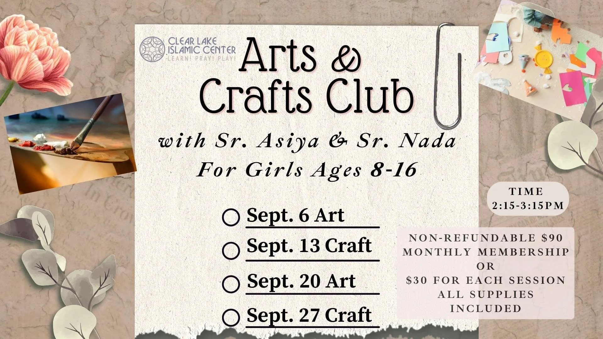 π Schedule: β’ Sept. 6 β Art π¨ποΈ β’ Sept. 13 β Craft βοΈπ§΅